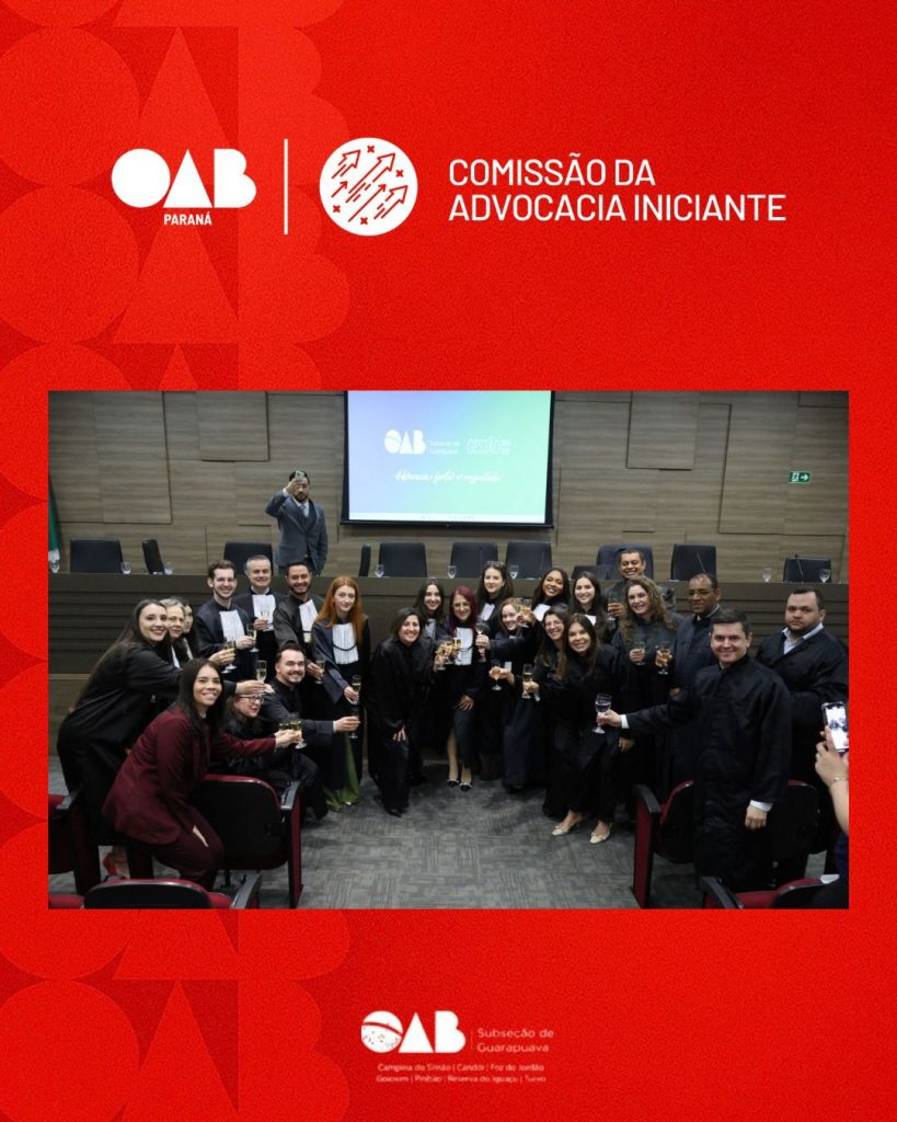 A OAB Subseção Guarapuava realiza em 22/09/25 a cerimônia de juramento e entrega de credenciais aos novos advogados(das)