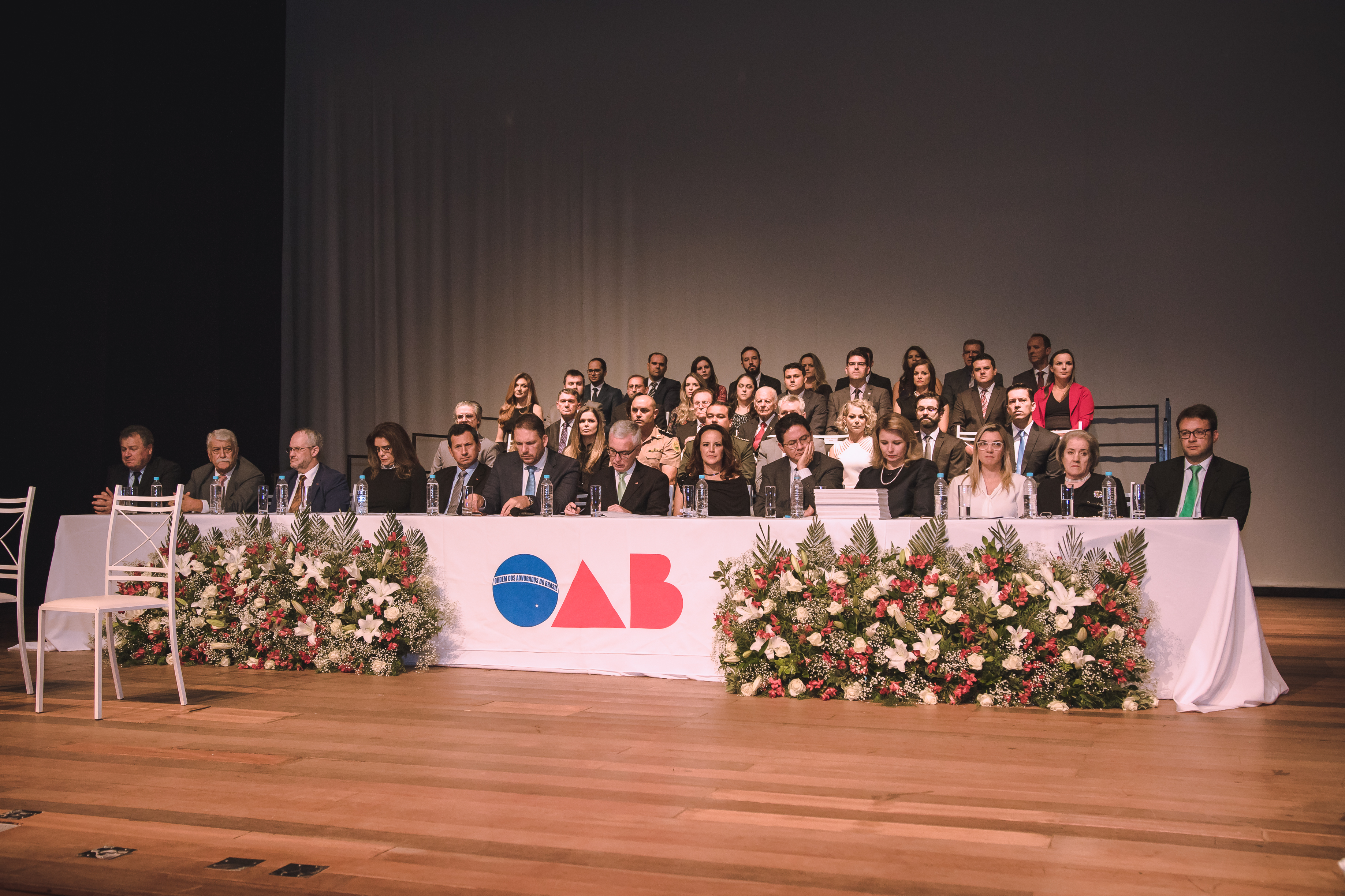 28 de fevereiro de 2019Inovar com experiência. Esta é a principal proposta – e desafio – da nova gestão da OAB Guarapuava, triênio 2019-2021, empossados na última quarta feira (27), em cerimônia realizada no Teatro Municipal de Guarapuava para advogados e advogadas do município e da região. Maria Cecília Saldanha está na presidência da Subseção, acompanhada do vice-presidente Miguel Sarkis Melhem Neto; secretário-geral André Almeida Gonçalves; secretária-geral adjunta Edinara Zago Kaminski do Nascimento; e tesoureiro Milton Korzune.