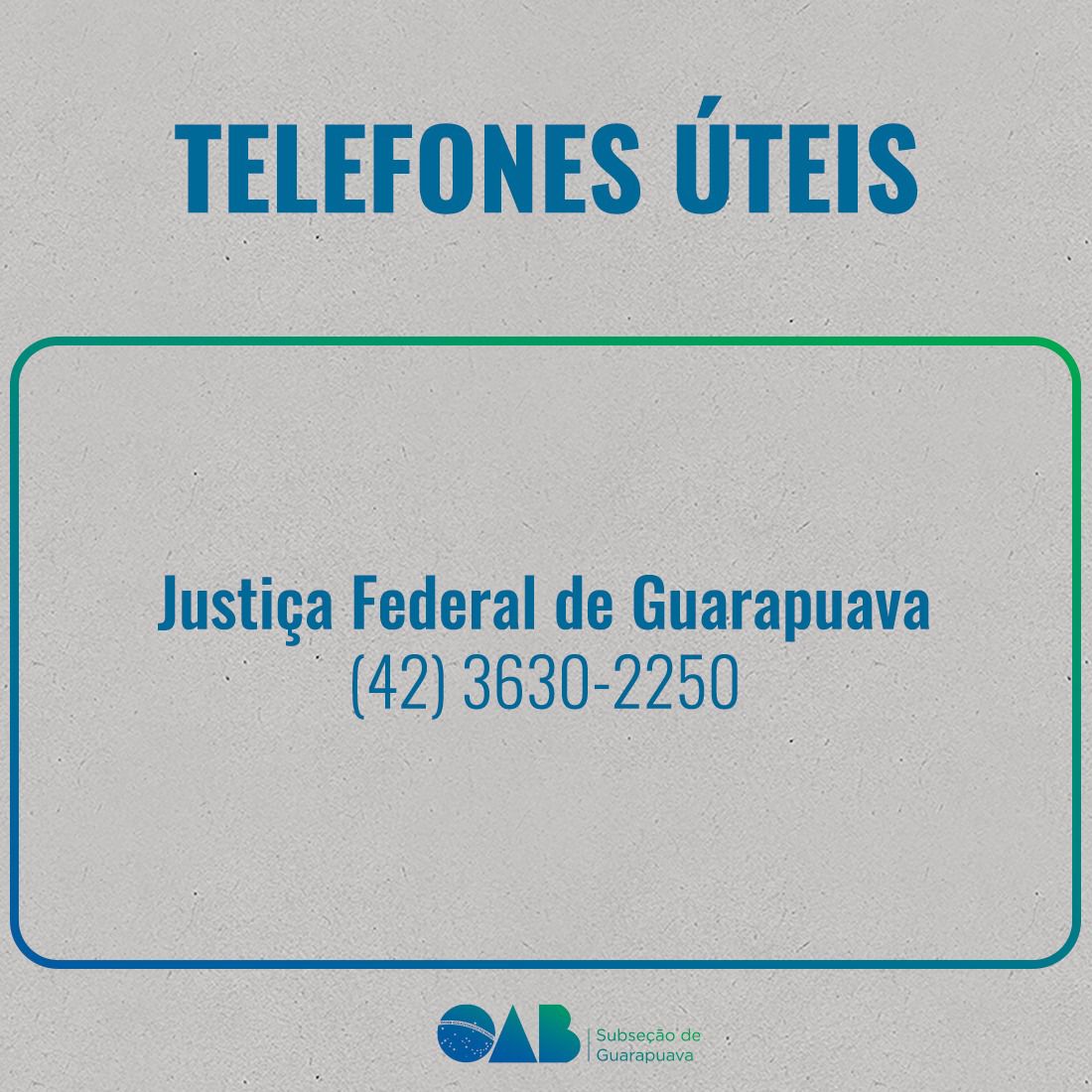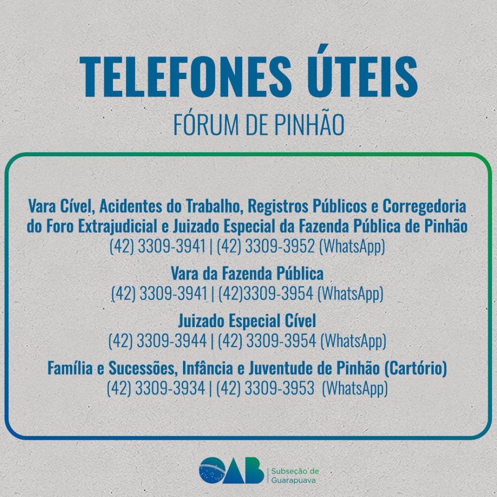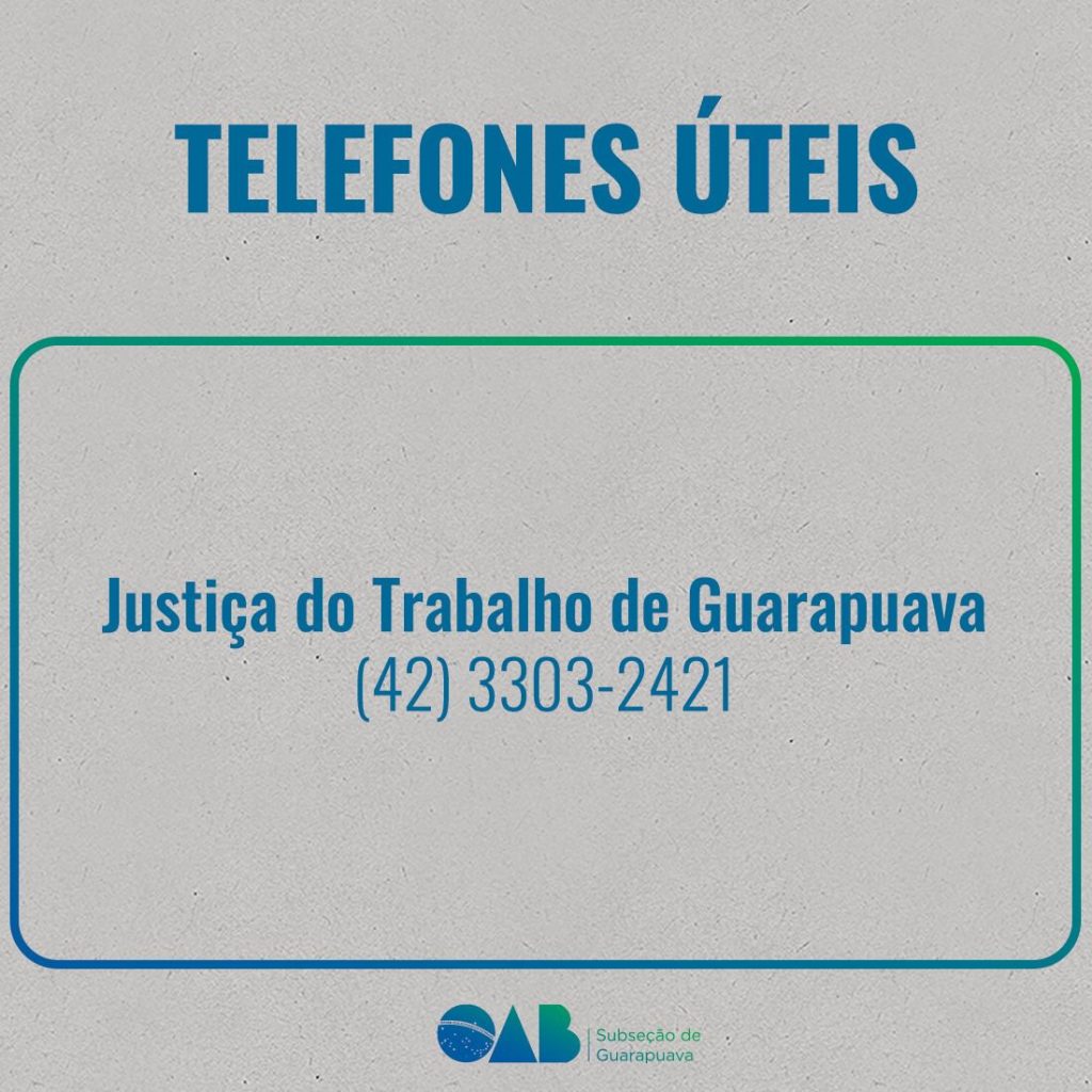 17 de janeiro de 2025A OAB Subseção de Guarapuava, comprometida em facilitar o dia a dia da advocacia, compartilha uma lista de telefones úteis com os contatos de órgãos e instituições de interesse da classe.