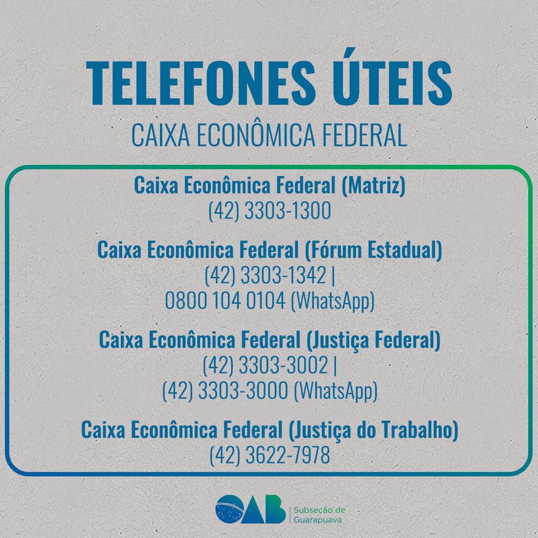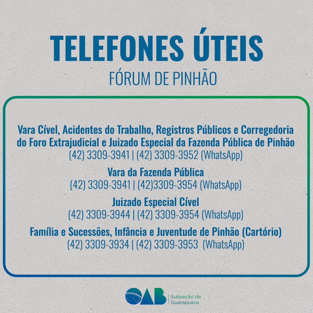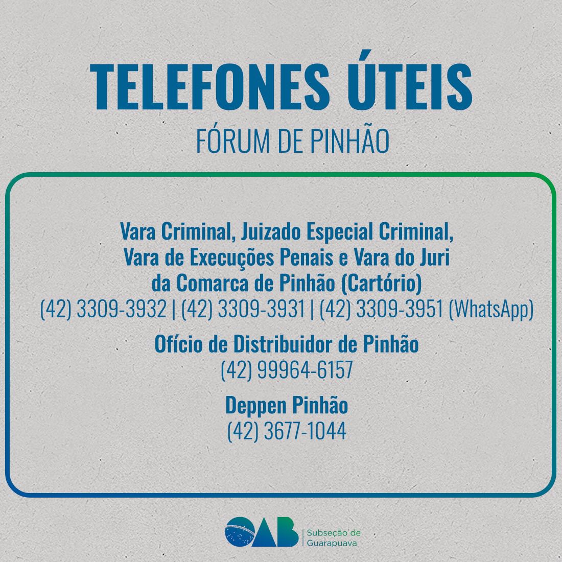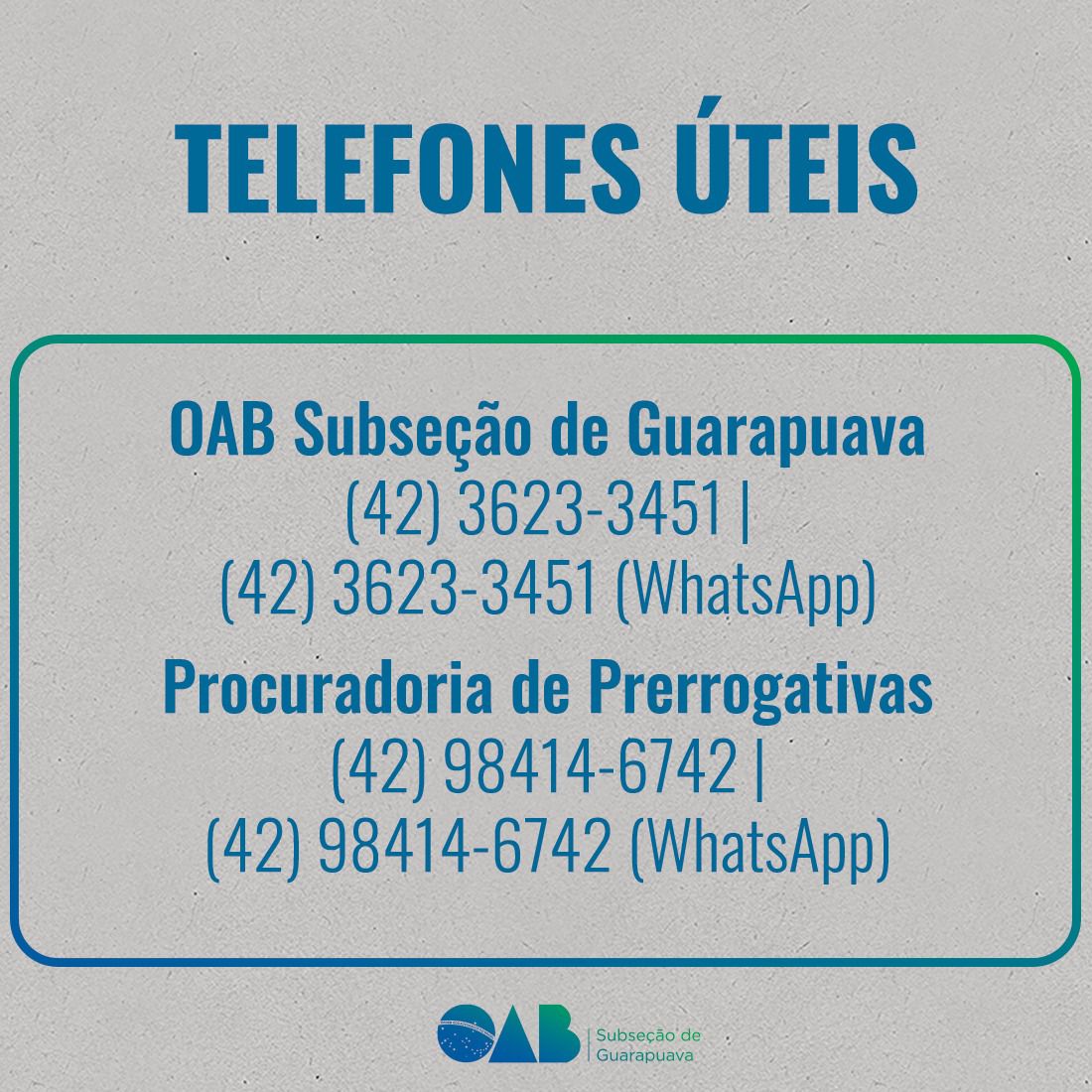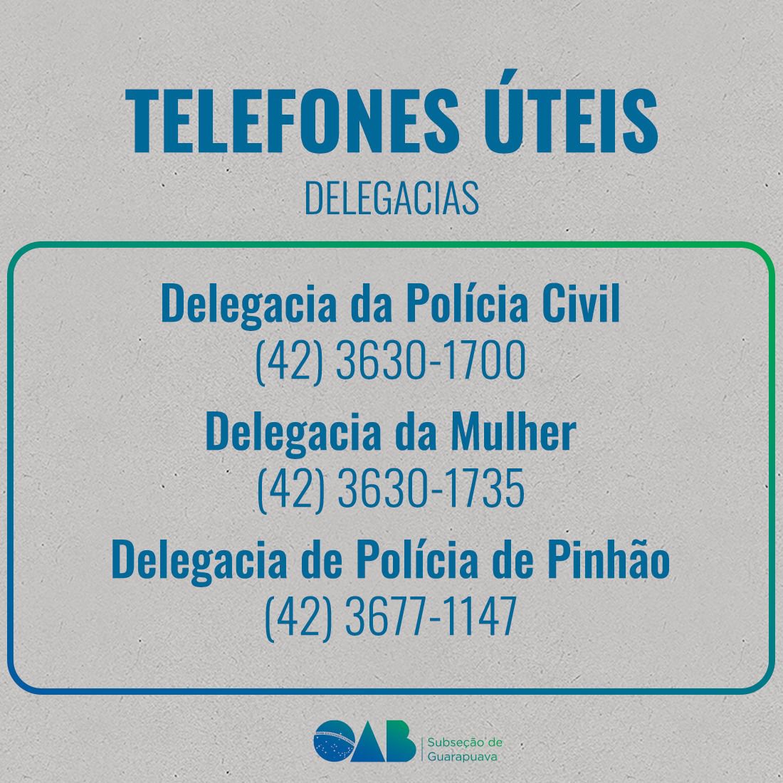 Telefones úteis: confira lista criada pela OAB Subseção Guarapuava para facilitar consulta